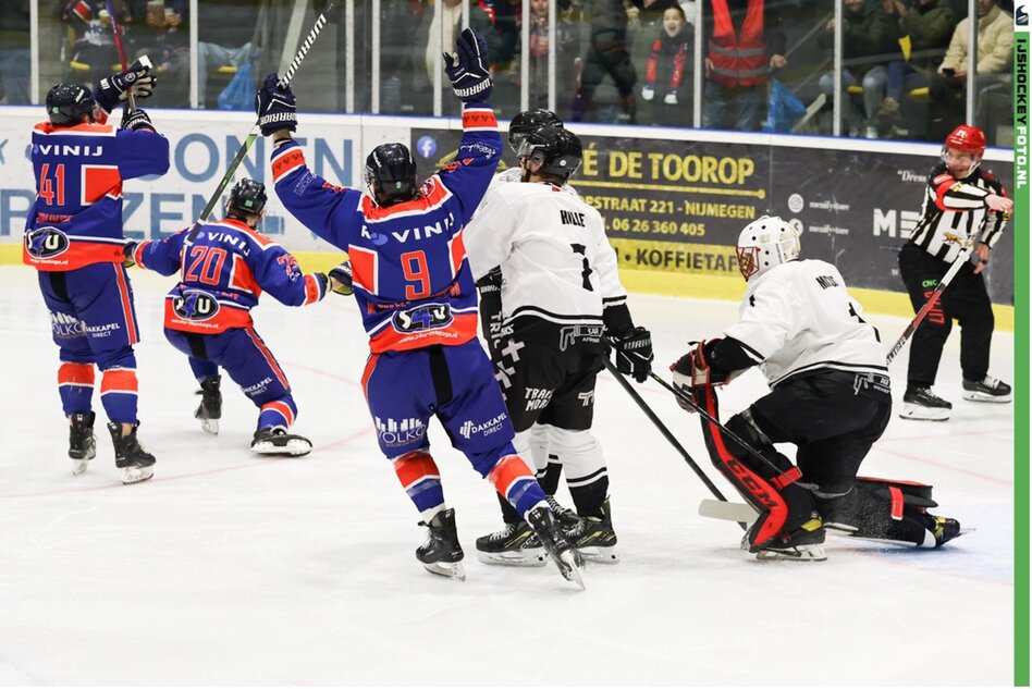 Nee, de Devils ontsnapten uit de klauwen van de Tigers via de vier Musketiers uit Nijmegen. Sluwe vos Levi Houkes (goal) was alert en werkte na een prachtige actie van Kevin Bruijsten (goal en assist) de cruciale 3-1 achter Missler. Good old Nick de Jong (goal) toonde precies één minuut na die derde goal met een geplaatst schot zijn geweldige spelinzicht; 4-1. De Jong scoorde op aangeven van musketier nummer vier, Mitch Bruijsten.