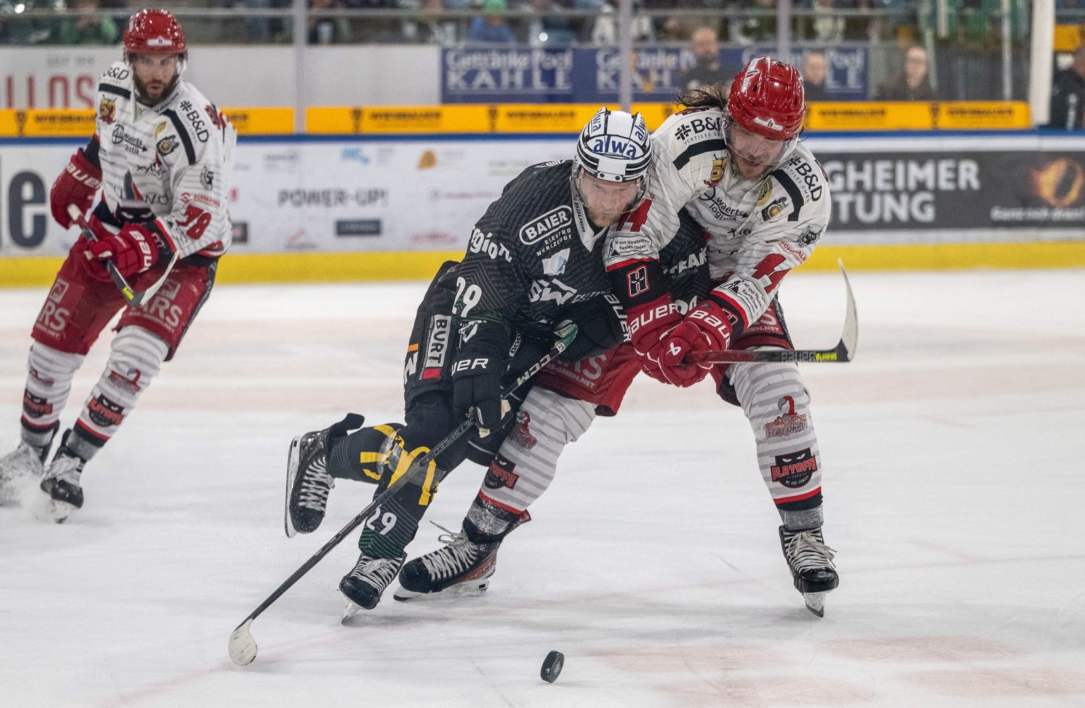 Marcus Götz (rechts) stand mit den Hannover Scorpions im Oberliga-Finale 2024/25 gegen Bietigheim. Foto: Eibner Pressefoto