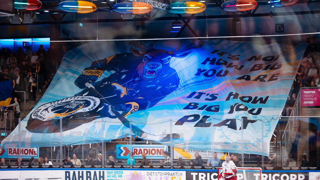 Laten we beginnen om de referees en de linesmen te bedanken voor een uitstekend gefloten wedstrijd. Slechts vier keer werd er een ‘Sin Bin’ opgezocht. Aan beide kanten twee keer. De eerste periode duurde effectief nog geen dertig minuten. Tilburg was ligt in het voordeel qua shots on goal met elf om negen maar beide goalies hielden alles tegen. Het dichste bij kwam Max Hermens die de lat raakte. Dat werd anders in de tweede periode. Binnen drie minuten na puck drop pakte Tilburg de voorsprong. Een schot vanaf de blauwe lijn door Jordy Verkiel leverde een rebound op die door Donny van Belkom vrijstaand bij de tweede paal binnen werd getikt.