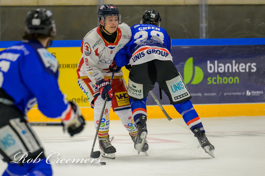In de slotfase haalde Geleen de goalie naar de kant voor een extra veldspeler, maar Heerenveen besliste het duel definitief via Mikkonen met een empty-netter voor de 5-3 en maakte daarmee zijn hattrick compleet.