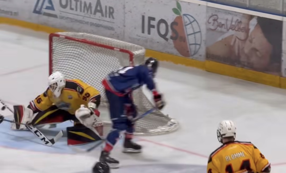 Screenshot Cor Machielsen 25 oktober 2025 Bijna een 'between the legs goal' van Jacky de Zwart tegen Mechelen Foto: Insta Stories HIJS Hokij