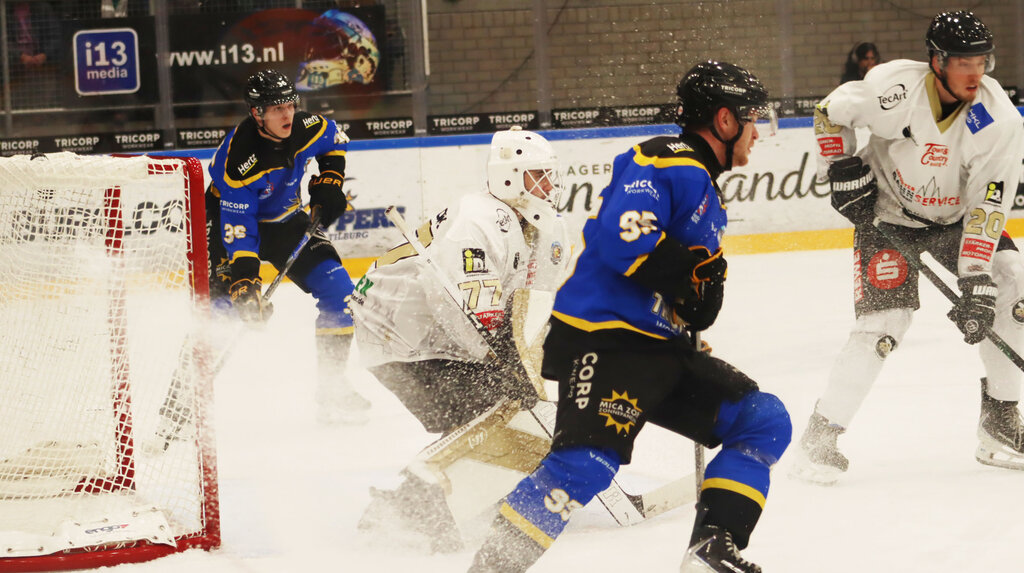 TecArt Black Dragons goalie Justin Spiewok moest 5 keer vissen. Foto: Cor Machielsen Face-Off.