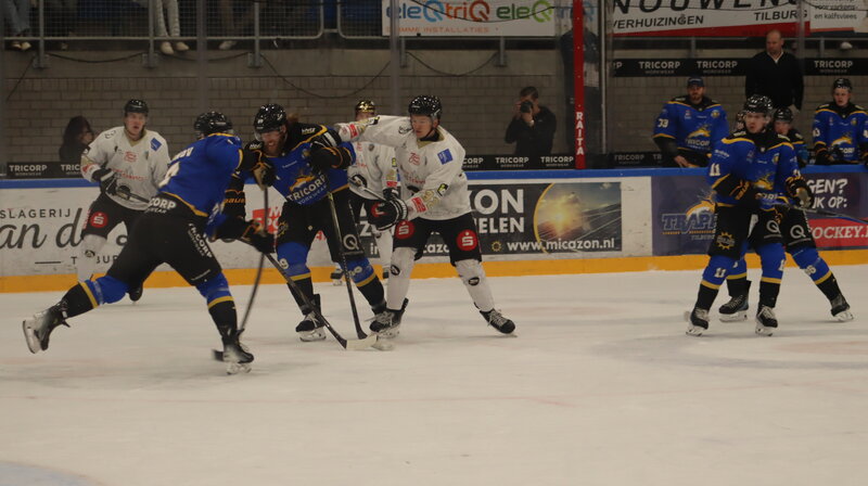 Kort daarna bracht Enzo Herrschaft met wederom een powerplay goal de spanning enigszins terug met de 5-3, maar dichterbij kwamen de Black Dragons niet meer. Tilburg hield het hoofd koel, speelde de resterende minuten gecontroleerd uit en hield de punten verdiend in eigen huis.