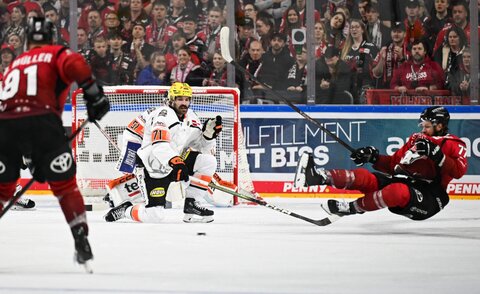 Afgelopen weekend kende Keulen een bittere ervaring tegen koploper Adler Mannheim. Terwijl de Haie duidelijk dominant waren (shots on goal-ratio 23-30) pikten de Adelaars in periode drie de krenten uit de pap. Bij een 3-1 achterstand haalde Haie-coach Kari Jalonen in minuut 57 zijn goalie Tobias Ancicka (achttien saves, 0.857%) van het ijs voor een extra aanvaller. Een minuut later lag de 4-1 in het lege Haie doel. In minuut 59 herhaalde zich dat scenario en vloog de 5-1 in het verlaten Keulse net. Haai Nate Scharr (1G, 1A) leverde voor de statistieken nog de 5-2 in de slotminuut. Maar de wedstrijd werd in periode twee verloren. Twee minuten van onachtzaamheid leidde tot de 2-1 en de 3-1. Van die concentratiedip herstelde de roofvissen zich niet meer. Vooral omdat Mannheim-goalie Maximilian Franzreb (28 saves, 0.933%) een prima dag had.