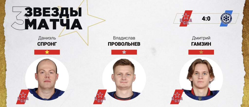 In Moskou troffen twee ploegen elkaar die dringend behoefte hadden aan herstel. CSKA had vier opeenvolgende nederlagen te verwerken, terwijl Sibir zelfs acht duels op rij had verloren. De bezoekers verschenen bovendien met een gehavende selectie door blessures en misten ook nog hun belangrijkste offensieve verdediger Egor Alanov. Bij CSKA kreeg Dmitri Gamzin opnieuw het vertrouwen in het doel; Aleksandr Samonov was de back-up en import goalie Spencer Martin was een healthy scratch. CSKA won met 4-0 met drie punten voor Daniel Sprong. Die natuurlijk ook man of the match was.