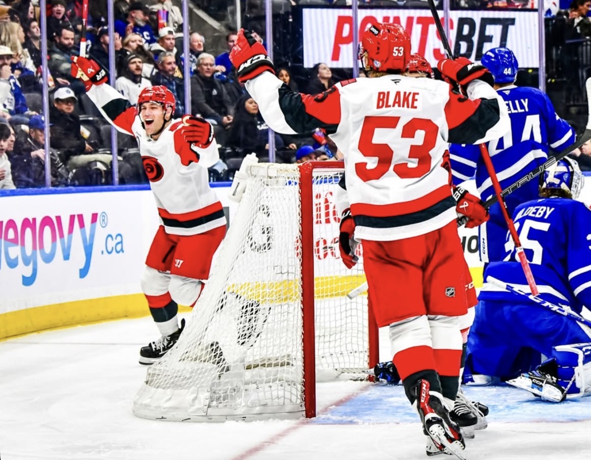 Toronto stond na 31 minuten met 4-2 voor. Leafs goalie Dennis Hildeby stopte 42 schoten 0,897%. Maar het was niet voldoende want drie unanswered goals deed Toronto uiteindelijk de das om. Taylor Hall en Logan Stankoven scoorde de 4-4 en 4-5.