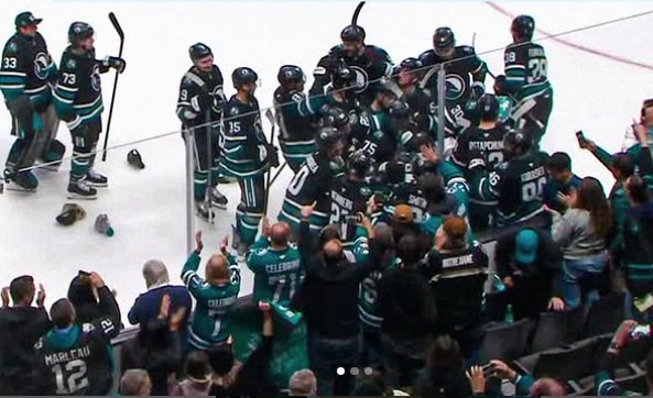 Macklin Celebrini scoort de OT winner voor San Jose Foto: Instagram San Jose Sharks