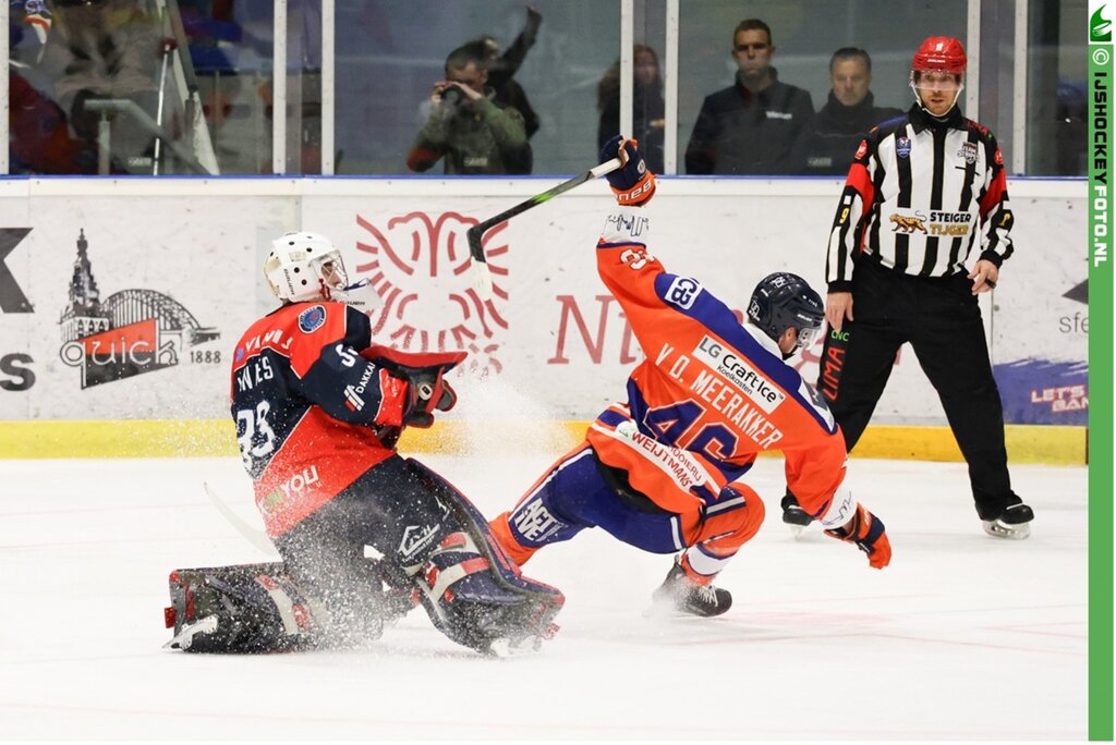 Met nog maar een paar minuten te spelen zette de pas achttienjarige Eagle Kess van de Wiel (1A) de finale aanval op. Via uitblinker Mario Zitella (3G, 3A) kwam de puck bij de eveneens sterk spelende Sander Horvers (2G, 1A). Hij rondde doeltreffend af: 8-4.