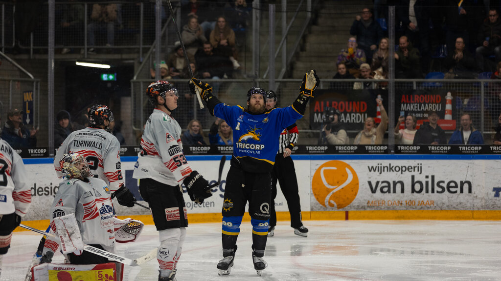 Mike Dalhuizen scoort een powerplaygoal. Foto: © Arie LeeuwesteijnIn de slotfase scoorde captain Max Hermens nog twee keer en bracht daarmee de eindstand op 6-1. Coach Danny Albrecht was content met weer eens een dominante wedstrijd van de Trappers. De Trappers kunnen even een weekje rust nemen want ze spelen niet dinsdag 25 november en niet op vrijdag 28 november. Pas 30 november speelt Tilburg tegen de Herforder EV in IJssportcentrum Tilburg. Puck drop 19:00 uur.