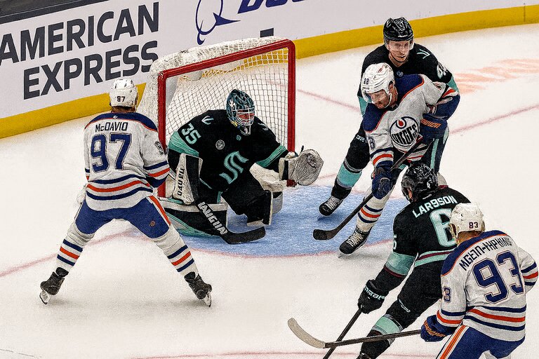 Met een weergaloos goede Stuart Skinner (24 saves, shutout) op doel en een herstelde Ryan Nugent Hopkins (1G, 1A) op het ijs bleken de Oilers een paar maten te groot voor de zwakke Kraken. Met een uitstekende powerplay 100% twee uit twee en een nog betere penalty kill zes uit zes waaronder een dikke anderhalve minuut 5-op-3 waren de Oilers oppermachtig. En dat werd wel tijd nadat 25% van het seizoen erop zit. De vraag blijft wel natuurlijk lag het echt aan de Oilers of was Seattle niet echt in vorm.