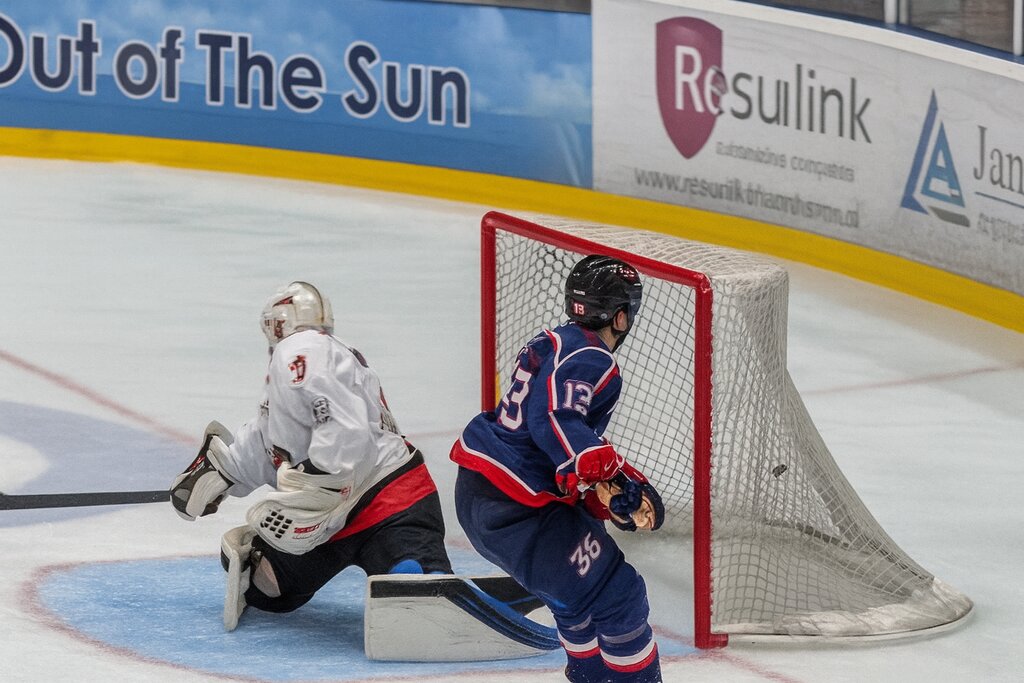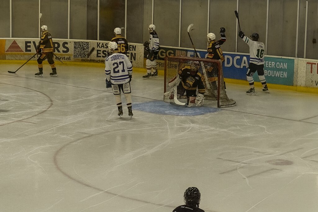 Dat deed captain Raymond van der Schuit. Een turnover door de Walen in de neutrale zone leverde een breakaway op voor Den Haag. Matias Mustonen onderschepte de puck gaf hem mee aan van der Schuit en die omspeelde met een mooie schijnbeweging goalie Passingham voor de 1-0. Dat het na de eerste periode nog 1-0 was ook te danken aan de Haagse goalie Mario Culina die twee keer Bryan Henry op een breakaway afhield van een Belgische treffer.