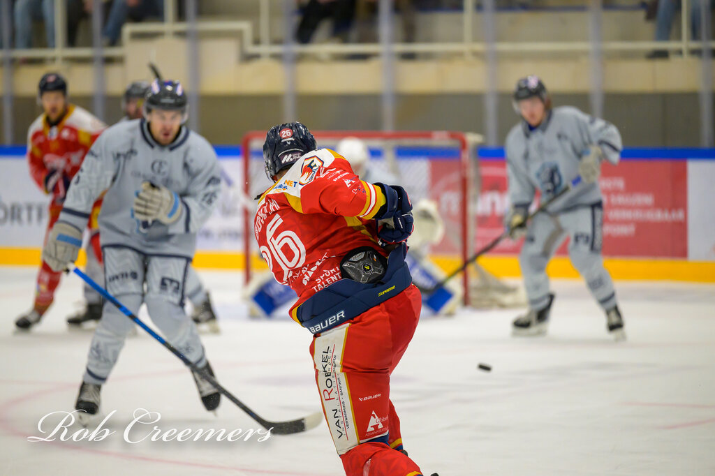 Binnen vijf minuten stond er al 2-0 op het scorebord in het Mediacité door goals voor Liège door Anthony Gagnon en Tanguy Auger. In de tweede periode liepen de Walen uit naar 4-0 door goals van wederom Gagnon en Boet van Gestel. Maar binnen een tijdsbestek van 38 seconden in de laatste minuut van de tweede periode scoorde Jacques de Ceuster twee keer. Maar er kwam geen comeback voor HYC want in de laatste periode scoorde binnen 92 seconden Luke Stegmann de 5-2 waarna Olaf-Jan Schöningh de eindstand op het bord schoot van 6-2.