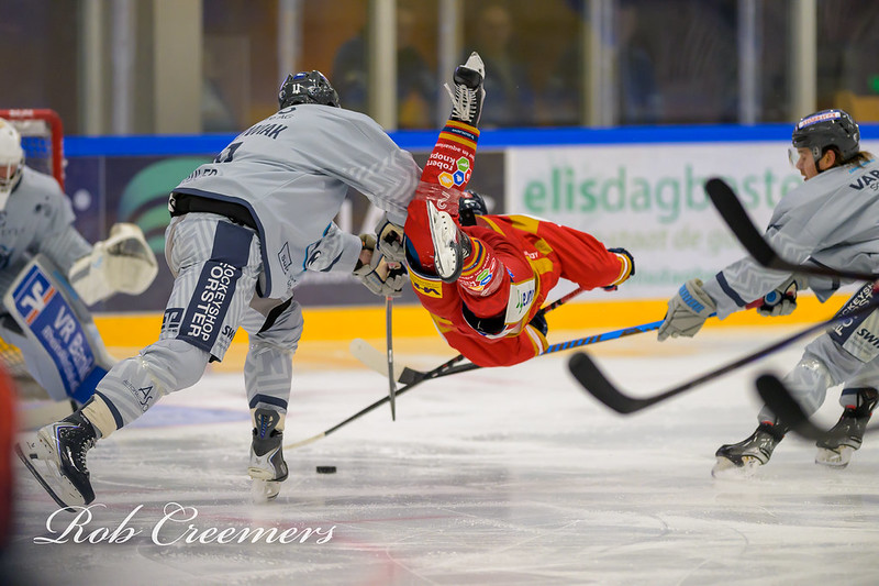 Binnen vijf minuten stond er al 2-0 op het scorebord in het Mediacité door goals voor Liège door Anthony Gagnon en Tanguy Auger. In de tweede periode liepen de Walen uit naar 4-0 door goals van wederom Gagnon en Boet van Gestel. Maar binnen een tijdsbestek van 38 seconden in de laatste minuut van de tweede periode scoorde Jacques de Ceuster twee keer. Maar er kwam geen comeback voor HYC want in de laatste periode scoorde binnen 92 seconden Luke Stegmann de 5-2 waarna Olaf-Jan Schöningh de eindstand op het bord schoot van 6-2.