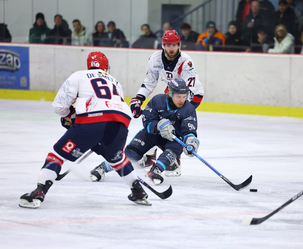 In de derde periode leken de Walen de wedstrijd definitief naar zich toe te trekken toen Yoren de Smet na 52 minuten de 1-3 binnenschoot, op aangeven van Olaf-Jan Schoningh en Logan Denoble. Wat volgde was echter een indrukwekkende comeback. Slechts 35 seconden later bracht Jeff Smith de spanning terug op een assist Finn Walkowiak, waarna Tom Stumpe met een afstandsschot de gelijkmaker produceerde: 3-3. De overtime leverde ondanks kansen over en weer geen beslissing op, waardoor shoot-outs noodzakelijk waren. Logan Denoble scoorde de game winning shootout en schoot de Belgen voor het eerst naar de finale om de CEHL-Cup.