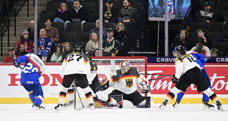 Duitsland, met onder anderen Carlos Händel (nog niet gedraft) in de defensie, wist pas halverwege de derde periode te scoren via Dustin Willhoft (nog niet gedraft). In de slotfase gooide Adam Beluško (nog niet gedraft) de wedstrijd definitief in het slot met een empty-net goal.