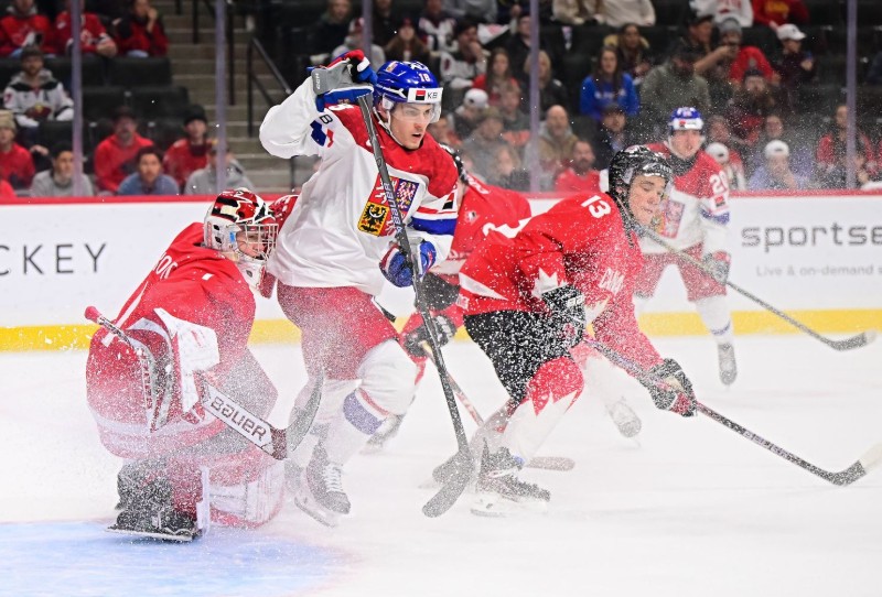 Tsjechië begon furieus aan de wedstrijd en zette Canada meteen onder druk. Toch openden de Canadezen de score via Tij Iginla (Utah Mammoth, 2024), na voorbereidend werk van Misa. Lang konden zij daar niet van genieten, want Tomáš Galvas (nog niet gedraft) en Curran zorgden voor de 1-1. In de tweede periode liep Tsjechië uit naar 3-2 via Adam Titlbach (nog niet gedraft) en Adam Benák (Minnesota Wild, 2025), maar Canada bleef aanklampen.