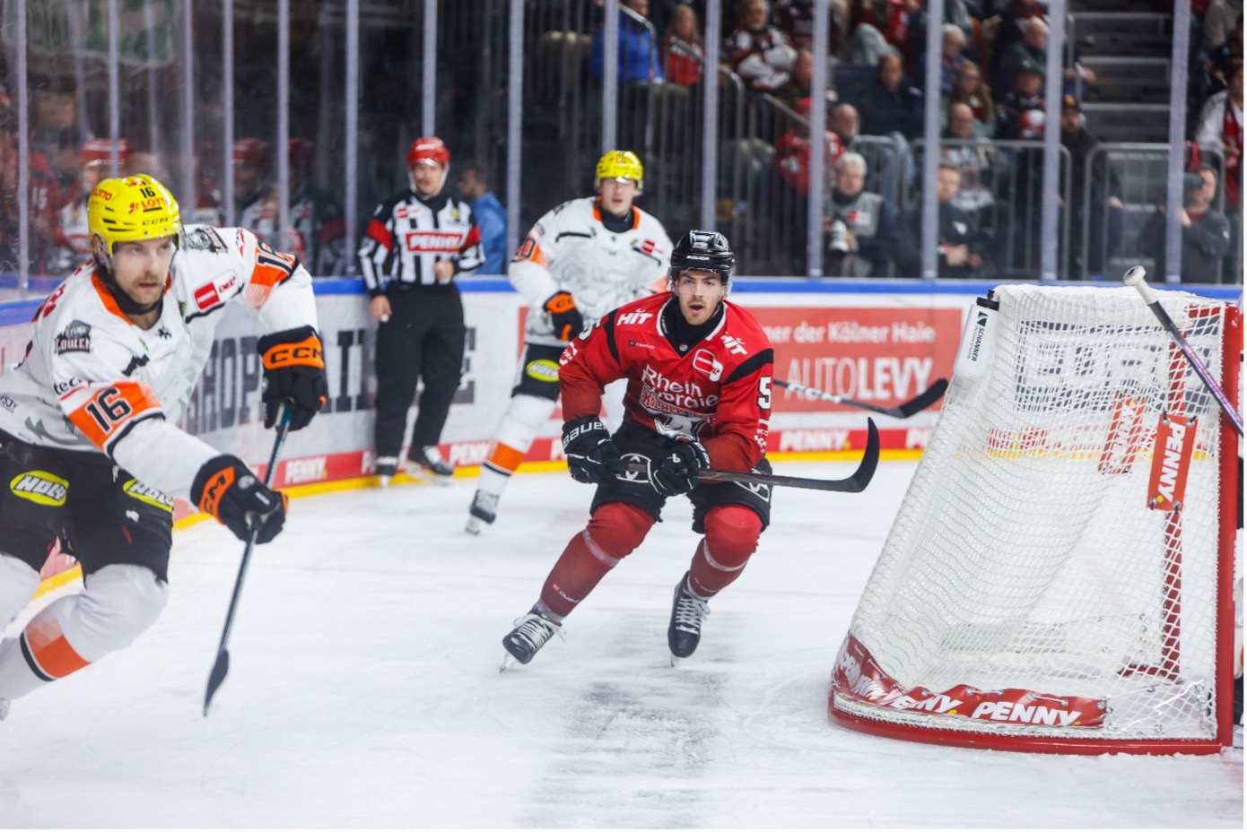 Nadat Köln in periode twee via Gregor MacLeod (1G) de score opende trok Frankfurt tussen minuut 42 en 54 de wedstrijd naar zich toe. Leeuwen Tommy Pasanen (2G) maakte de 1-1 en Nathan Burns (1G, 1A) de 1-2. In minuut 57 kregen de Haaien via de powerplay de kans op gelijke hoogte te komen. De powerplay werd versterkt toen in minuut 58 doelman Juvonen naar de kant werd gehaald. Maar Frankfurt gaf geen krimp en leverde een uitstekende penaltykill. Een minuut later viel het doek voor Keulen. Leeuw Matthew Wedman (1G) schoot met nog 54 seconden op de klok de 1-3 in het lege Haaiennet. Twee seconden voor tijd herhaalde Pasanen dat kunstje:1-4. Onze Vlaamse Haai Robin van Calster (ruim negen minuten ijstijd, 1 SOG en 2 FOW,100% score) kende een sterke wedstrijd. Zijn teamgenoot Maximilian Kammerer werd vooraf geerd; hij speelde DEL-wedstrijd nummer 500.