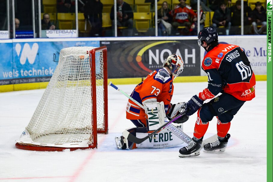 Aan de andere kant verkeerde Eindhoven-netminder David Reid (22 saves, 0.846%) ook in blakende vorm. In de eerste twintig minuten boog hij alleen voor de absolute vedette uit de Eredivisie: Martynas Grinius (2G, 1A).