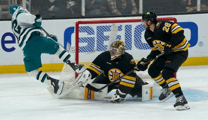 Weer eens een thuisnederlaag voor Boston sinds December. De Sharks bouwden een 4-0 voorsprong op en Boston liep zich stuk op goalie Alex Nedeljkovic 39 saves 0,951%. En een mogelijke ‘goal of the year’ kandidaat met William Eklund’s goal.