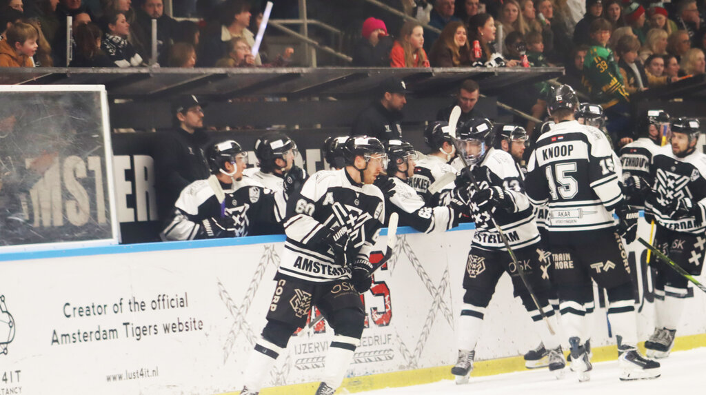 In periode twee en drie was het een ander verhaal. Daar was Utrecht wel bij de les. In die veertig minuten scoorden de Draken vier keer en Amsterdam drie keer. Hunter Fortin (2G), Brock Montgomery (1G, shorthanded) en Wessel Copier (1G) troffen namens de Dragons het doel van Tigers-netminder Cas Neumann. Tegelijkertijd hielden aan Mokumse zijde Boris Coehorst (1G), Justin van Baarsen (1G) en Poutanen de marge zo ruim dat de zege niet in gevaar kwam. Opvallend was dat Utrecht ondanks zeven minor penalty’s in die twee perioden toch trefzekerder was.