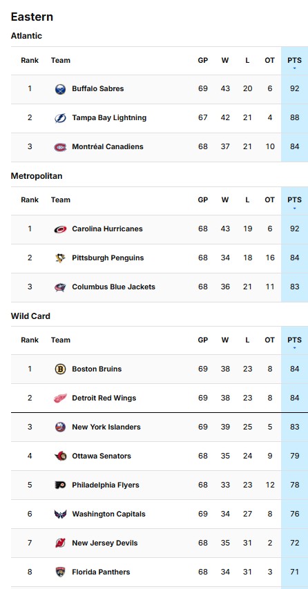 Elf wedstrijden in de NHL op speeldag 144 waarbij enkele clubs de hoop op een wild card levend hielden zoals Boston, Utah, Florida, Columbus, Philadelphia en Ottawa.