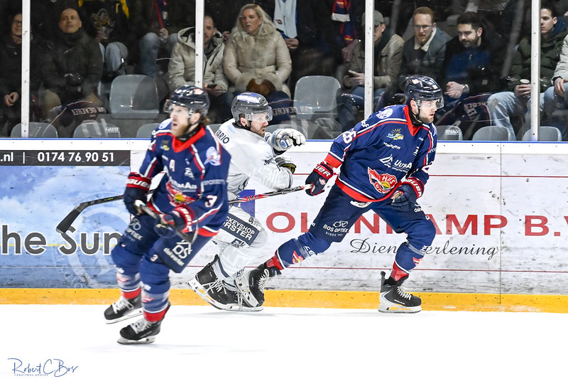 Köllejan kan de puck alleen gehoord hebben. Neuwied vocht zich nog even terug in de wedstrijd. Janeck Sperling bracht de spanning terug met de 2-1 met een schot dat via de legguard van de Haagse goalie toch binnen viel. Maar een dikke minuut later herstelde Matias Mustonen de marge weer naar ‘zwei Tore’. Doorzetten van Frits Doop aan de boarding en een assist van Jay Huisman van achter het doel op de geheel vrijstaande Mustonen die de hoek kon uitzoeken.