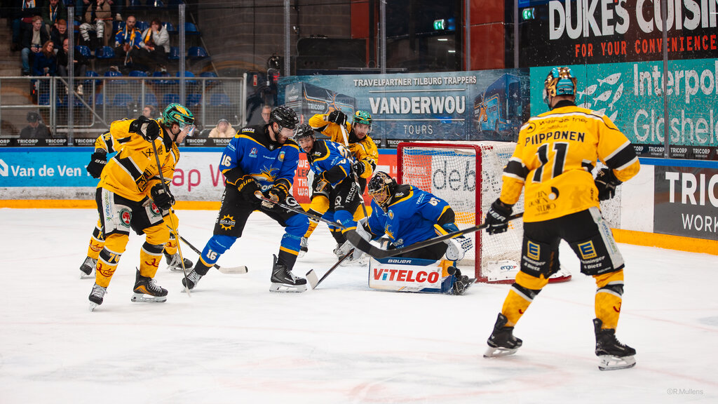 Cedric Andree liet het niet meer spannend worden zelfs niet op een 6-op-3 met een aantal uitstekende reddingen hield hij de voorsprong vast zodat Marinaccio met een empty netter de eindstand op het bord schoot van 5-2. Matchpoint voor de Trappers. Gaan ze het vrijdag afmaken?