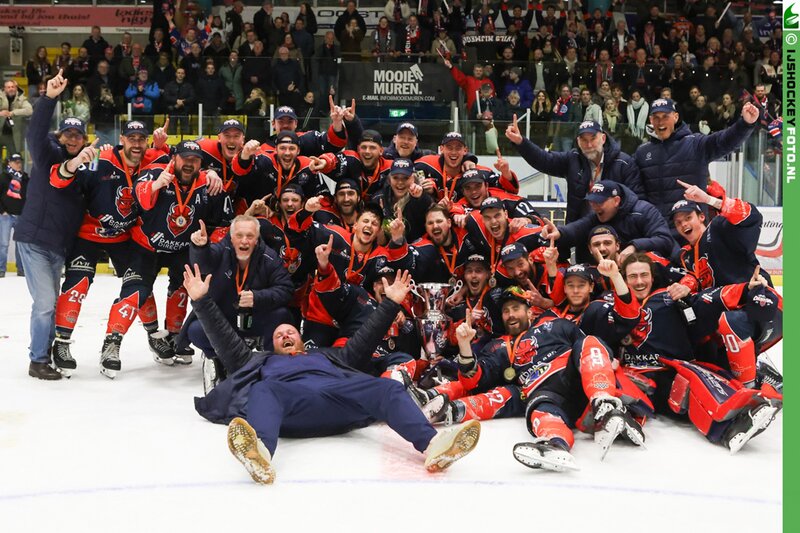 Devils-coach Chris Eimers draagt de Landstitel op aan zijn broer Henk Eimers, Foto: © Paul Nicolaassen/IJshockeyfoto