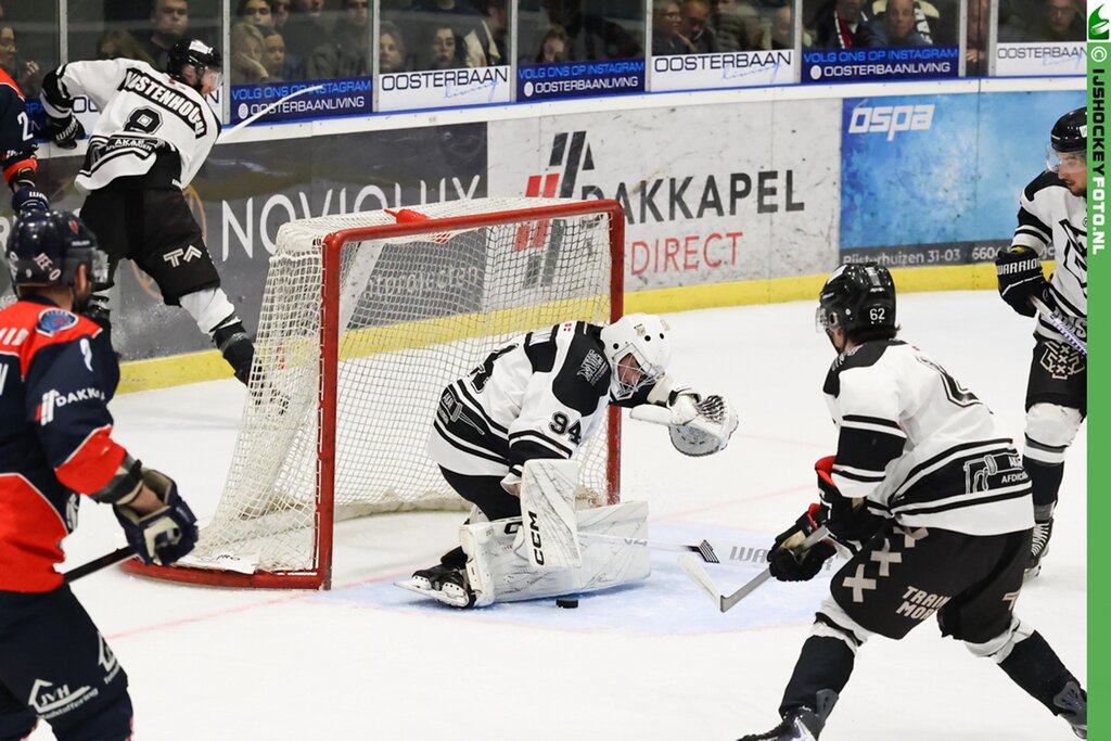 De negentienjarige rookie-doelman Pelle Bunting neutraliseert een Devils aanval Foto: © Paul Nicolaassen/IJshockeyfoto