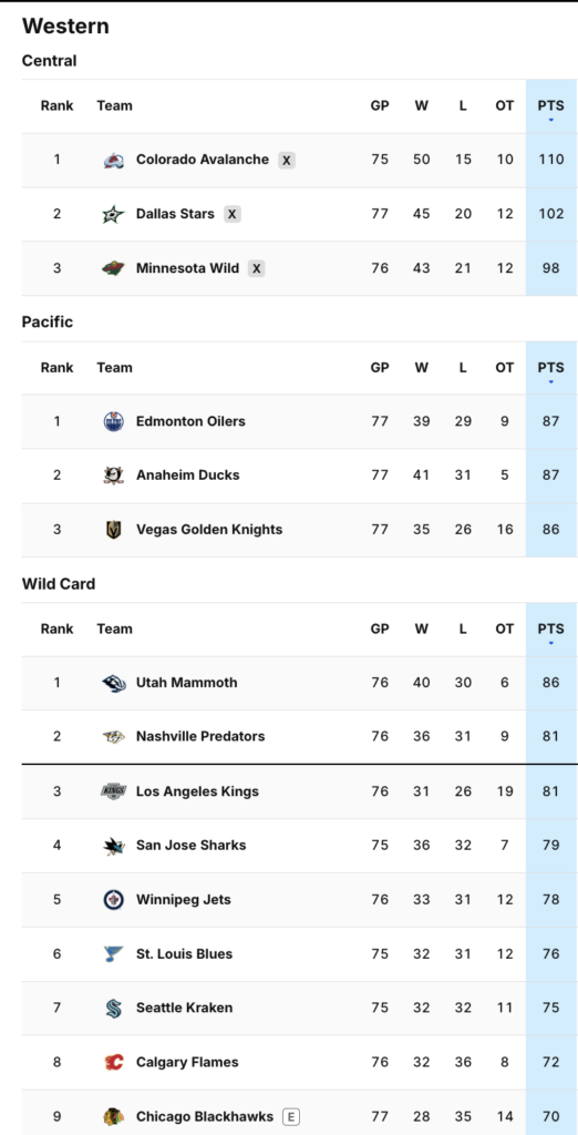 Ook Ottawa blijft het maar spannend maken in de East op een wild card plek. Ryan Hartman scoorde twee keer voor Minnesota.