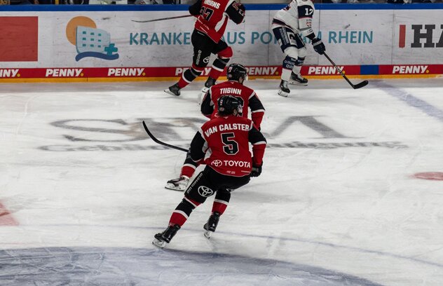 Het resterende deel van de wedstrijd probeerde Keulen alles maar het lukte niet om de Berlijnse Muur te slopen. Tegelijkertijd doken de messcherpe ijsberen regelmatig op voor het Haie-doel. Periode twee leverde sensationeel mooi, snel en spannend ijshockey op maar gescoord werd er niet. De penaltykill bij beide teams was gisteren dik in orde want zelfs een 5 on 3 voordeel werd door geen van beide teams verzilverd. Vlaamse Haai Robin van Calster (acht shifts, ruim zes minuten ijstijd) ging in zijn vierde lijn voorop in de strijd, vocht voor de puck in de D-zone en zette volop druk in de O-zone. Ook al zette beide coaches in periode twee en drie steeds vaker hun top six op het ijs, ook in de laaste twintig minuten leek de puck het net niet meer te kunnen raken.
