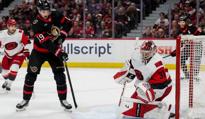 Ottawa kreeg kansen genoeg vooral in de tweede periode waarin de Canes tien strafminuten pakte en zelfs een 5-op-3 voor een dikke anderhalve minuut was niet besteed aan de Sens. Pas laat in de tweede periode bij vijf op vijf scoorde Drake Batherson de 1-1 want Carolina was al vroeg in de eerste periode via Logan Stankoven op 0-1 gekomen. De 18.739 toeschouwers gingen er eens goed voor zitten maar 83 seconden na de 1-1 was het alweer 2-1 voor Carolina door Jackson Blake. Die kreeg werkelijk een fantastische cross-pass van K’Andre Miller. In de derde periode werd er niet meer gescoord zodat Carolina op matchpoint staat.