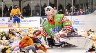 Gisteren speelde Laco Eaters Geleen in eigen huis tegen Tilburg Trappers Toekomstteam. De Limburgers wonnen met 8-1 en deden goede zaken op de ranglijst. Eaters deed nog betere zaken voor KiKa, de stichting die zich inzet voor kinderen kankervrij. De Teddy Bear Toss leverde bijna 11.000 knuffels op, en een bedrag van bijna €4.900. Marko Bok …