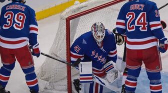 Vannacht op speeldag 100 van de NHL werd in alle hevigheid duidelijk hoe groot de crisis is bij de New York Rangers. Het drama voltrok zich in een hal zo leeg dat er drie echo’s waar te nemen waren en met een verzameling los zand op het ijs en een wanhopige coach op de bank. …